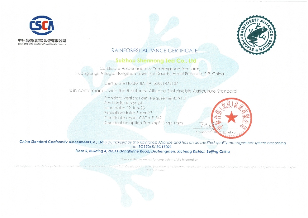雨林聯(lián)盟認證證書